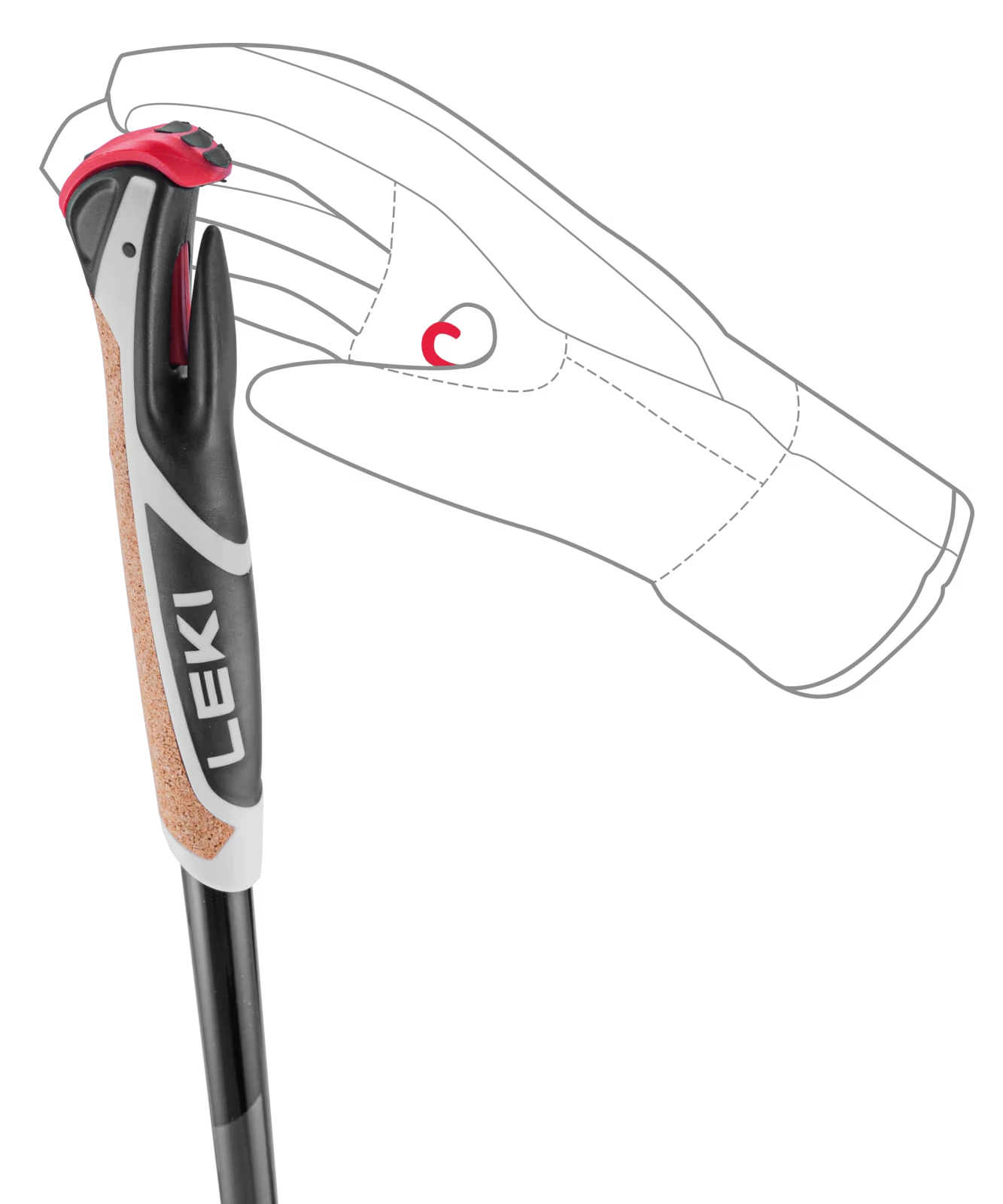 Dragonera ergonómica para un buen empuje y sistema Shark para soltar fácilmente la dragonera del bastón.